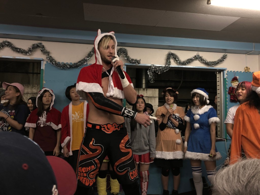 She was involved in a wild champions vs challengers 8-woman tag at the December 14th show, defended the belt against Uno and Satsuki Totoro at her final P’s Party show (as an active wrestler) on Decemeber 18th, and lost the title to Tae Honma on Ice Ribbon’s December 21st show at Shinkiba 1st Ring (in a match that also involved Kaori Yoneyama).