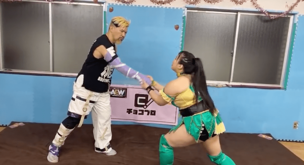 Giulia & Suzu had the “Tokuho” (Saya’s corner splash), “Submarine” (her reverse pedigree), and “Grand Maestro de Tequila” (her sideways rollup). Asahi & Tsukka needed to complete Uno’s schoolboy rollup, “Saber Chop,” and “Katsudon” (over the shoulder into a faceplant).