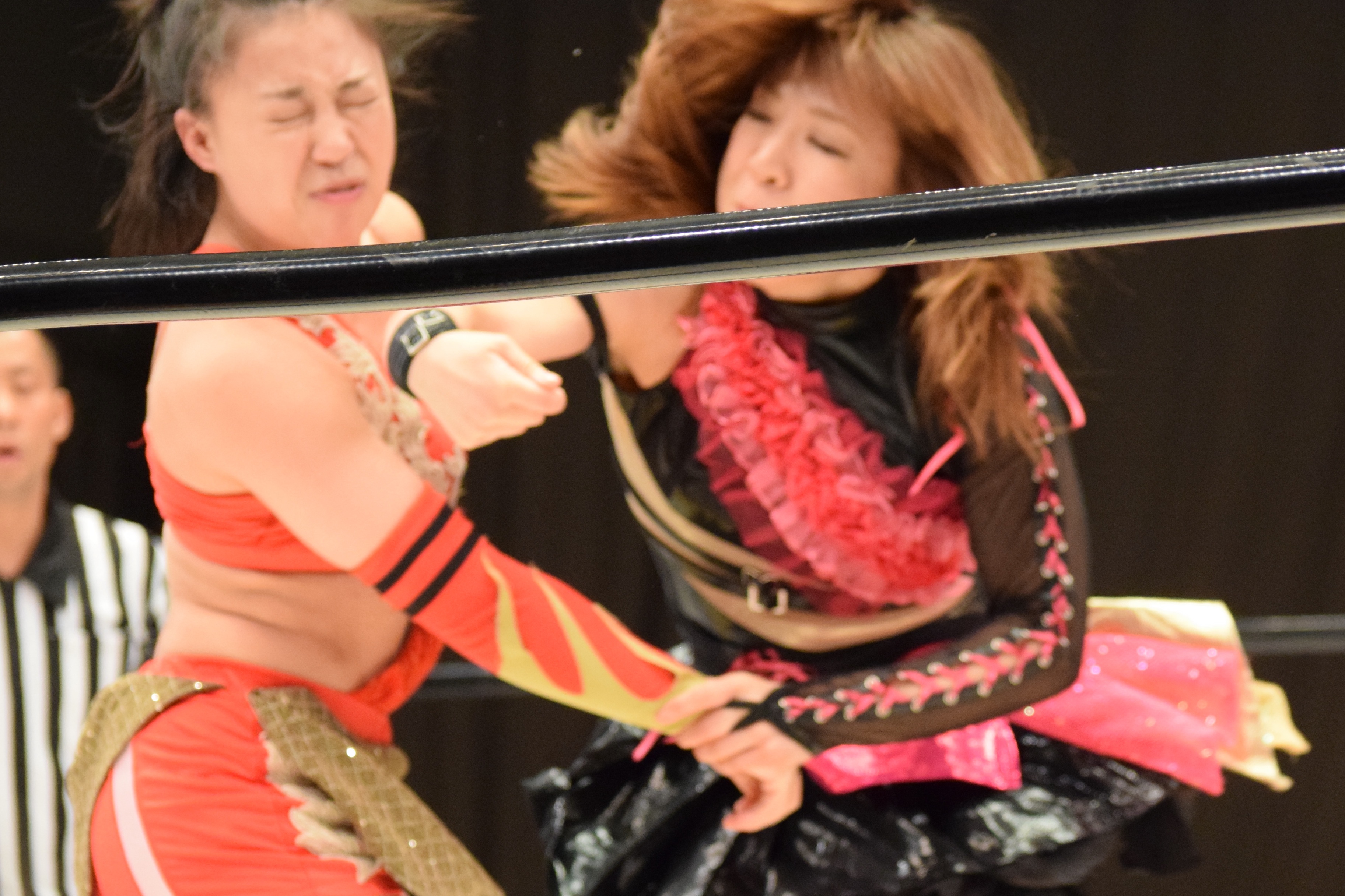 The progress of all three in the passing couple years is fantastic. Maki looked great here, and I was beyond psyched to see her challenge Riho for her Super Asia Championship at Gatoh Move (which didn’t end up happening as planned due to a typhoon O_o). Great stuff, and the countout victory makes sense to put Mio & Kyuri over without being definitive. However I share Maki’s expressed confusion (pictured above) over losing by countout when people were rolling in and out of the ring during the count. As much as I adore Mio & Kyuri, Maki & Yuu were robbed here. Minor complaint though, and the match was excellent overall.